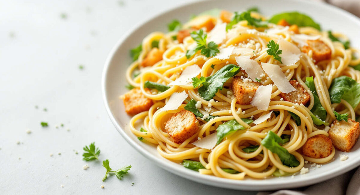 Même si vous n’êtes pas un As de la cuisine, nous allons vous aider à préparer une salade de pâtes façon César. La salade césar, est une recette traditionnelle américaine qui allie le croquant des légumes au moelleux du poulet. Nous allons ici l’adapter en version pâtes pour un plat complet et savoureux.